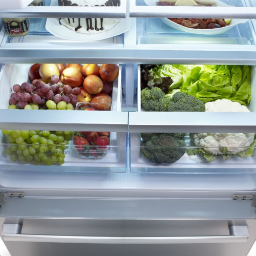 - Le reste des produits (bleus prêts à l'emploi, saucisses, viandes fumées, conserves ouvertes) sont situés sur les étagères du milieu du réfrigérateur. Dans le même temps, vous ne pouvez pas les empiler les unes à côté des autres et recouvrir les étagères de papier ou de polyéthylène - cela aggravera la circulation de l'air froid dans la chambre. Les nouveaux modèles de réfrigérateurs ont des ventilateurs spéciaux qui servent à mieux mélanger l'air et à établir une température uniforme dans tout le volume. Dans de tels réfrigérateurs, les étagères peuvent être solides, en verre incassable.