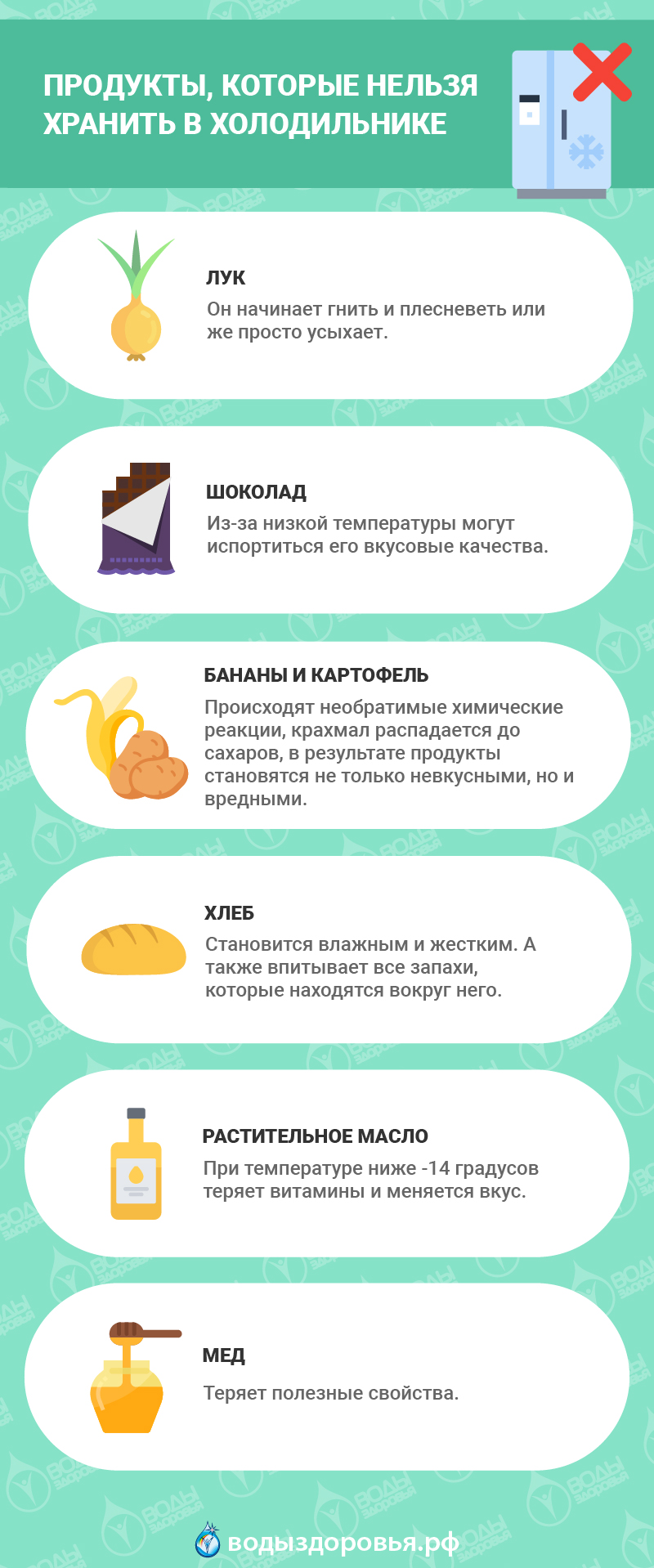 Bien sûr, pour la plupart des produits, le réfrigérateur est un excellent lieu de stockage. Le fait est que presque tout conserve mieux sa fraîcheur dans le froid. Cependant, il existe des produits qui, au contraire, commencent à se détériorer plus rapidement au froid.