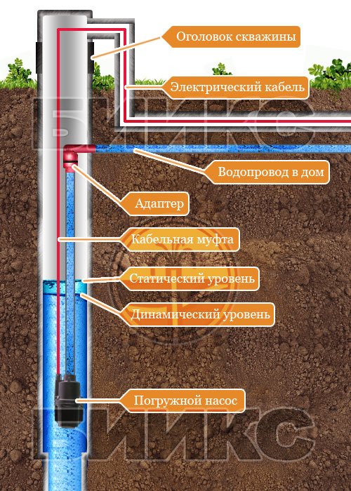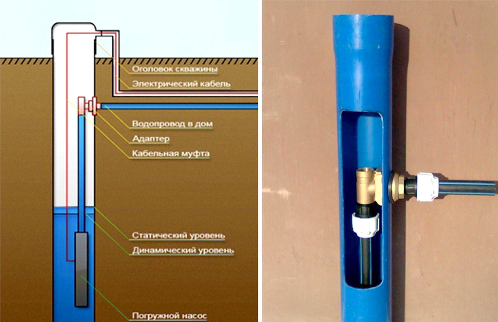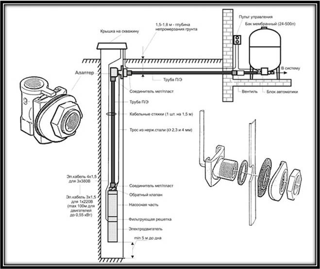 Étant donné que des vibrations se produisent pendant le fonctionnement de la pompe, il est recommandé d'utiliser des colonnes de tubage en acier lors de l'aménagement d'un puits avec un adaptateur. Le matériau est conçu pour supporter le poids de la pompe avec la tuyauterie installée et pour fixer le câble de sécurité.