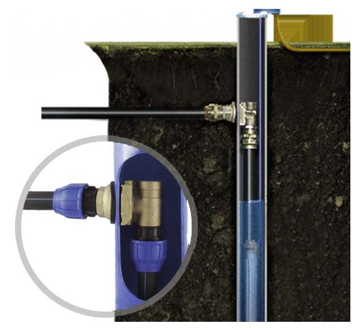 - si le système d'eau n'a pas besoin d'être utilisé pendant une longue période, l'adaptateur de fond de trou vous permet de vidanger l'eau.Il suffit de désengager la connexion des éléments, et tout le liquide s'écoulera.