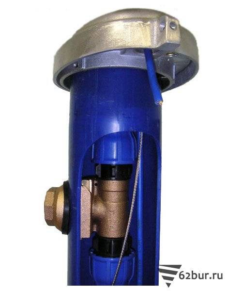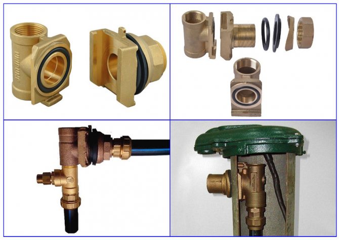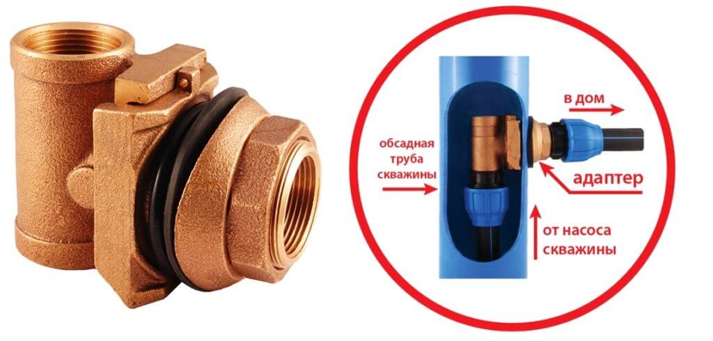 L'adaptateur de fond de trou, situé dans la cavité du canal d'amenée d'eau, empêche le trou de se givrer en hiver. L'appareil est un té en métal qui vous permet d'amener le flux d'eau du puits dans une canalisation située dans le sol. L'utilisation d'un adaptateur vous permet de réduire le coût de création d'un système d'alimentation en eau pour une maison de campagne.