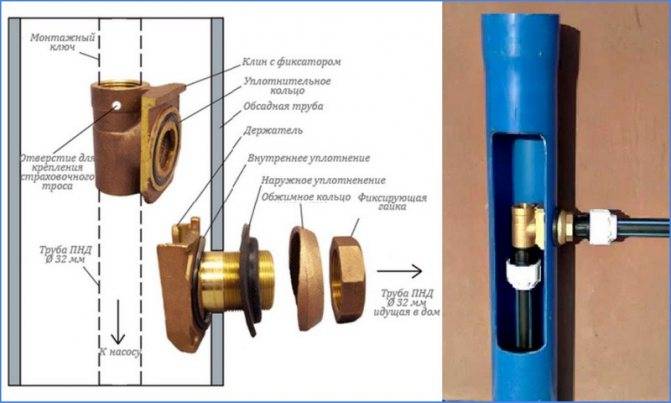 - Le but pour lequel les adaptateurs pour puits sont utilisés est la nécessité d'amener le tuyau qui alimente l'eau de la pompe du puits à la maison dans un tuyau de puits de travail à une profondeur supérieure à la valeur de congélation du sol.Mais en même temps, il est nécessaire de ne pas violer, d'une part, la fiabilité du tuyau de tubage du puits, d'empêcher l'eau de fonte de pénétrer dans le tuyau, et d'autre part, de préserver la méthode de démontage de la pompe elle-même et le tuyau qui est utilisé pour soulever l'eau de l'aquifère.