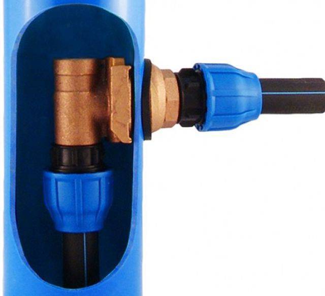 Pour ce faire, il est soigneusement abaissé dans le tube de tubage jusqu'au trou percé afin que le tuyau de dérivation avec une connexion filetée sorte finalement. Ensuite, un joint en caoutchouc et une bague de serrage sont installés de l'extérieur.