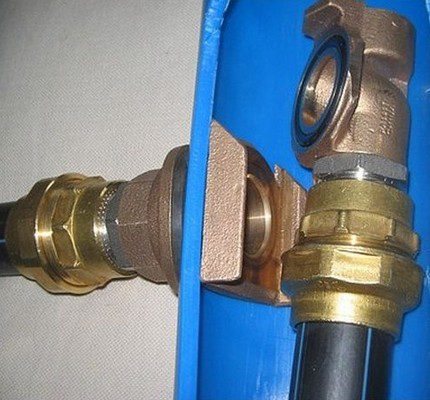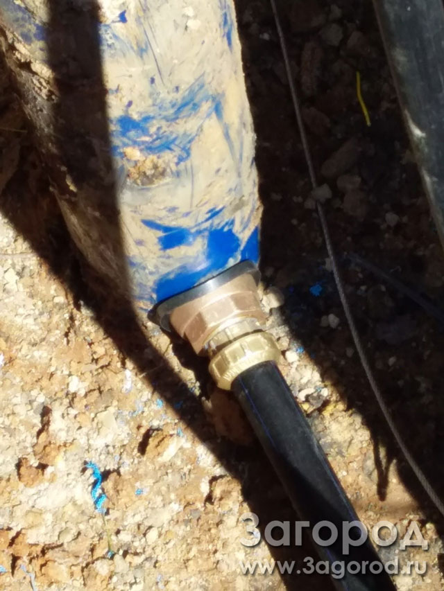 Étape 8. La partie extérieure de l'adaptateur est connectée au pipeline menant à la maison à l'aide d'un connecteur.