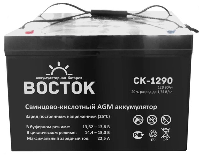 Une paire de puissantes batteries gel 200 Ah avec (puissance nominale 4,8 kW). Il s'agit d'une journée de fonctionnement d'appareils électriques avec une consommation non-stop de 180-200 watts. Les dispositifs de stockage d'énergie sont résistants au gel, c'est-à-dire qu'ils peuvent être installés dans le grenier et, comme ils sont sûrs, ils peuvent également être situés à côté des pièces d'habitation.