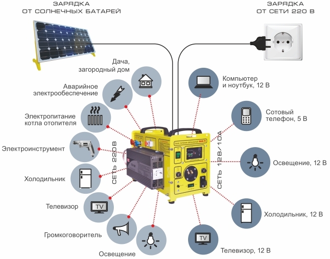 - Poids et dimensions de l'appareil. Ces paramètres sont nécessaires pour établir un schéma de connexion de la batterie, ainsi que pour déterminer leur emplacement.