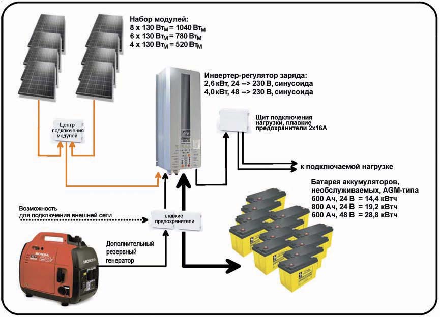 - efficacité de l'onduleur. Avec une bonne adaptation de la tension et de la puissance à l'entrée de l'onduleur, une valeur maximale de 0,92 à 0,96 sera atteinte.