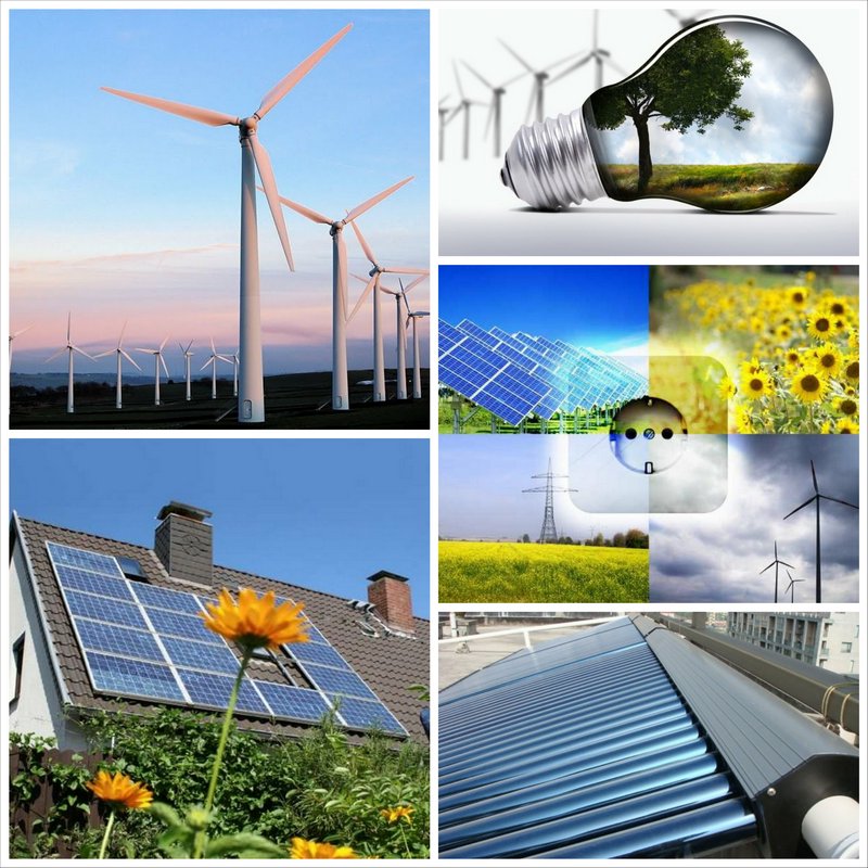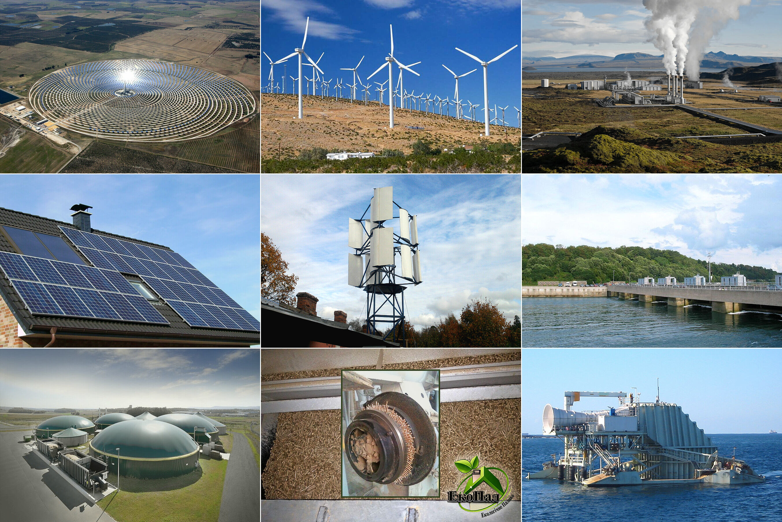 L'utilisation de systèmes de miroirs est populaire, ce qui chauffe l'eau à des températures élevées, ce qui donne de la vapeur qui, passant à travers un système de tuyaux, fait tourner une turbine. Les moulins à vent et les parcs éoliens produisent de l'électricité à partir de l'énergie éolienne, qui fait tourner des pales spéciales connectées à des générateurs.