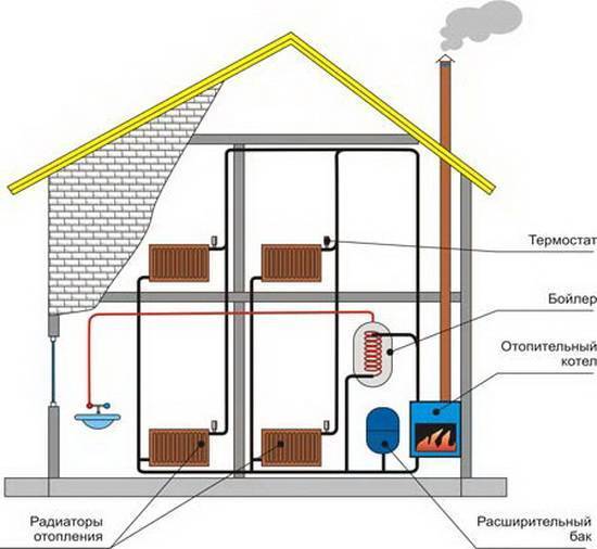 - Une chaudière à gaz avec un réservoir à gaz offre une autonomie de plusieurs mois, voire d'une saison entière. Il diffère défavorablement d'une chaudière électrique par la nécessité d'éliminer les produits de combustion, de sorte que l'emplacement de l'appareil est lié à la ventilation, à une cheminée ou aux murs extérieurs d'une maison privée;