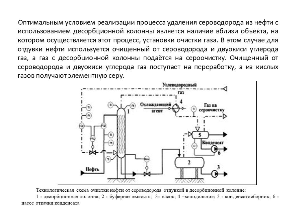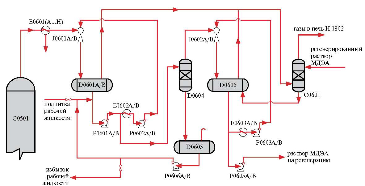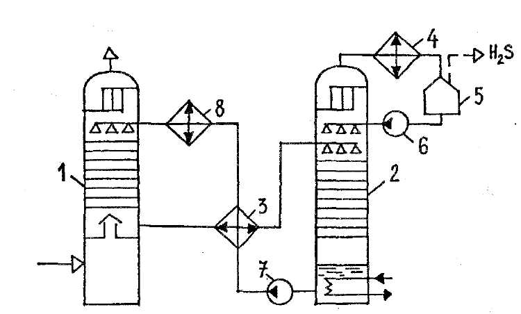 Afin que l'efficacité du nettoyage ne diminue pas en raison de l'augmentation de la température, l'excès de chaleur est éliminé avec la solution de déchets saturée de sulfure d'hydrogène. Et en tête d'installation, le flux est refroidi afin d'extraire les composants acides restants ainsi que le condensat.