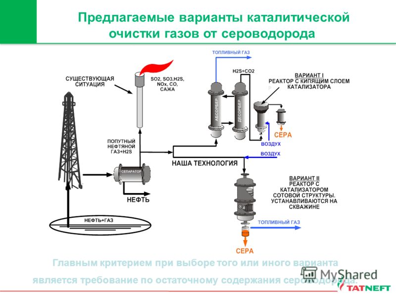L'installation de purification du combustible bleu à partir de sulfure d'hydrogène avec production de soufre élémentaire pour un traitement ultérieur sera présentée par la vidéo :