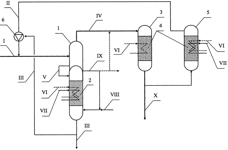 Le premier flux ne peut pas être qualifié de complètement pollué. Il ne contient que partiellement des composants acides, car certains d'entre eux sont éliminés lors du refroidissement à +50º/+60ºС dans l'échangeur de chaleur. Ce flux de solution est prélevé à la buse inférieure du désorbeur, refroidi et envoyé dans la partie médiane de la colonne.