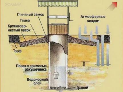 Important: si votre puits est peu profond (jusqu'à 10 m), vous devez contrôler attentivement les indicateurs microbiologiques du milieu aquatique, car dans de telles conditions, diverses bactéries et protozoaires se multiplient très rapidement dans l'eau stagnante.De plus, l'eau de puits doit être vérifiée pour la concentration de produits pétroliers, de composants de surface détergents et d'engrais, car toutes ces substances peuvent facilement pénétrer dans l'environnement aquatique du puits lors de fortes pluies.