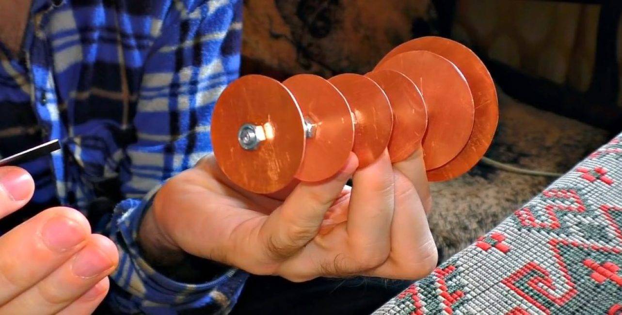 - Après cela, les disques eux-mêmes sont soudés les uns aux autres. Le travail doit être effectué avec un soin particulier et les joints doivent être bien soudés, afin d'éviter la pénétration de monoxyde de carbone dans la pièce chauffée. La dernière étape de la partie principale sera l'installation d'une cloison au milieu, pour obtenir l'effet de combustion à long terme du carburant.