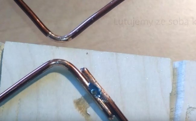 Nous coupons 2 autres morceaux de fil de cuivre de 22 cm de long et les divisons conditionnellement en 3 parties égales, tandis qu'aux points d'inflexion, encore une fois, nous retirons l'isolant.
