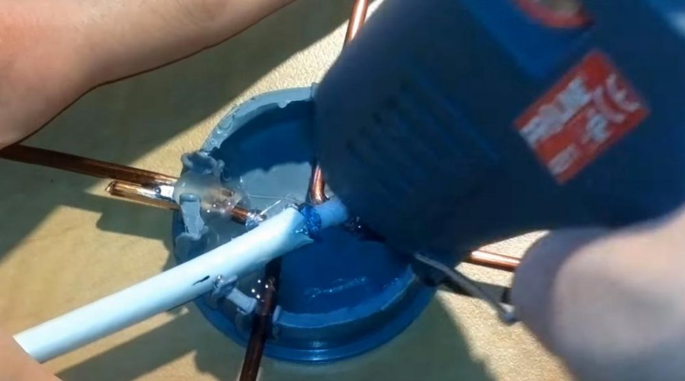 - Après la partie principale des travaux, les couvertures inférieure et supérieure sont fixées. Un trou est découpé dans la partie supérieure pour le tuyau de cheminée, puis il y est soudé. Cela doit être fait du côté opposé au foyer principal, sinon l'effet Buleryan ne fonctionnera pas.
