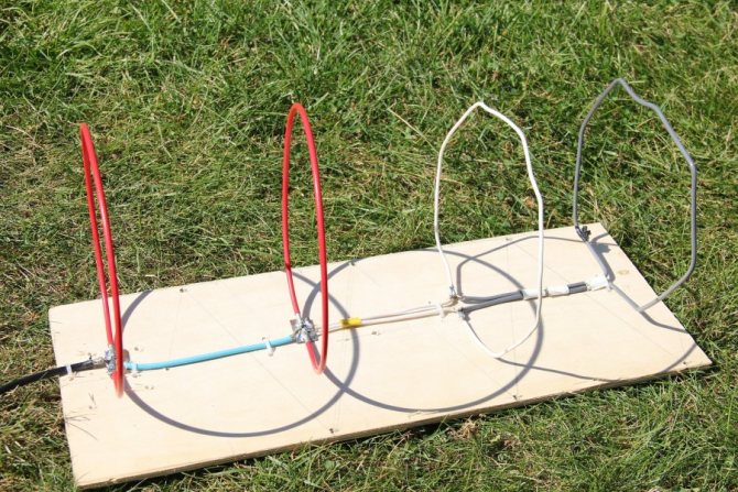 2) La partie extérieure de l'antenne. Fabriqué à partir de fil préparé. 1-1,5 mètre doit être tordu en un anneau dont le diamètre sera de 356 mm. jusqu'à 450 millimètres.