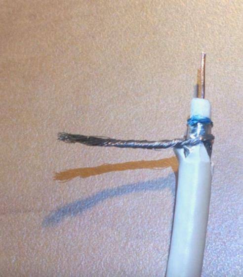 ![]() | Préparez le câble. Pour ce faire, faites une incision à partir d'un bord et retirez la couche isolante. Ensuite, la couche intermédiaire est coupée. À l'autre extrémité, une prise pour l'antenne TV est montée. |