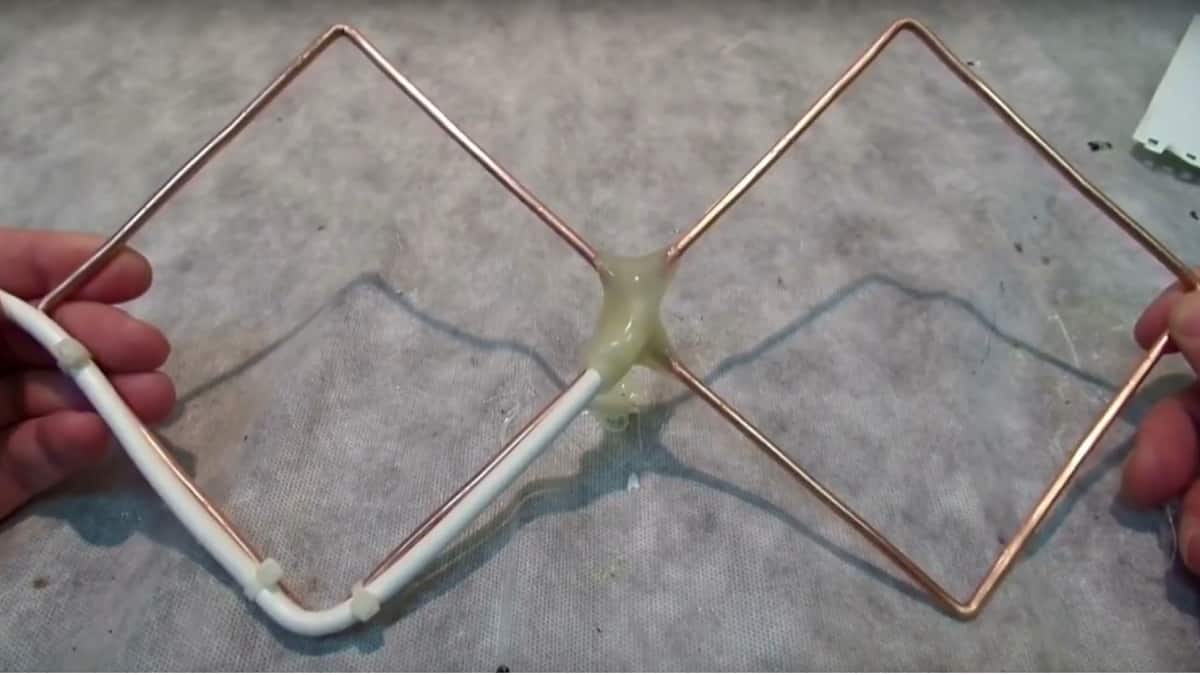 - Nous préparons le piège: nous plions le fil avec un losange de manière à ce que tous les côtés mesurent strictement 45 cm chacun (l'inventeur du produit artisanal affirme que ce sont les dimensions optimales de l'appareil).