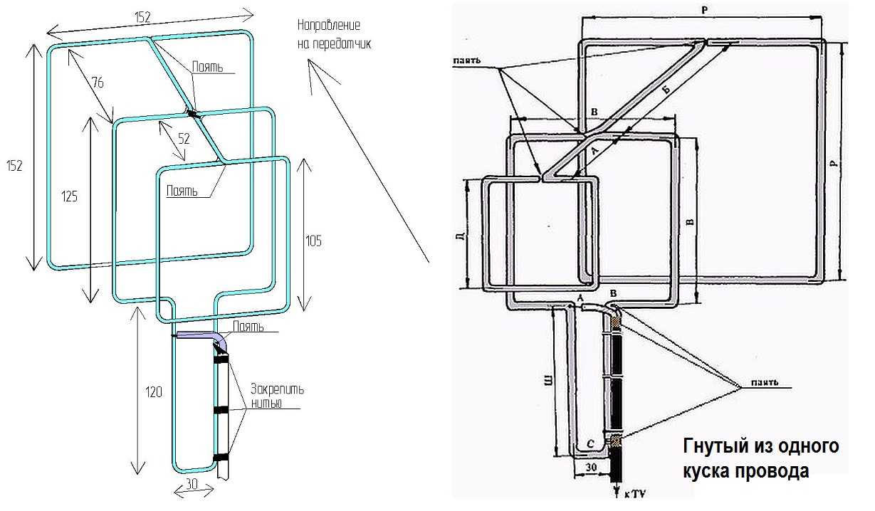 Nous attirons votre attention sur le fait que pour les segments pliés en deux, la distance entre les extrémités doit être de 7,5 cm (la valeur optimale pour recevoir un signal d'une antenne de télévision artisanale)