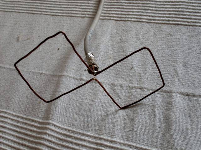 Coupez deux morceaux et divisez-les conditionnellement en trois parties, puis retirez la couche isolante aux points de pliage. Dans les zones nues, vous devez plier le fil. Sur ces éléments, la distance entre les bords doit être d'environ 75 mm. C'est la distance optimale pour une bonne réception du signal. Vous devez attacher la fiche au produit maison préparé, puis y connecter le câble. Ensuite, vous devez trouver un endroit approprié pour monter l'appareil.