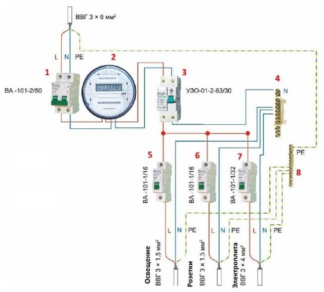 L'auto-exécution des travaux d'installation de dispositifs de protection implique l'utilisation de schémas. Les différentiels modulaires et leurs dispositifs automatiques sont installés dans le bouclier.