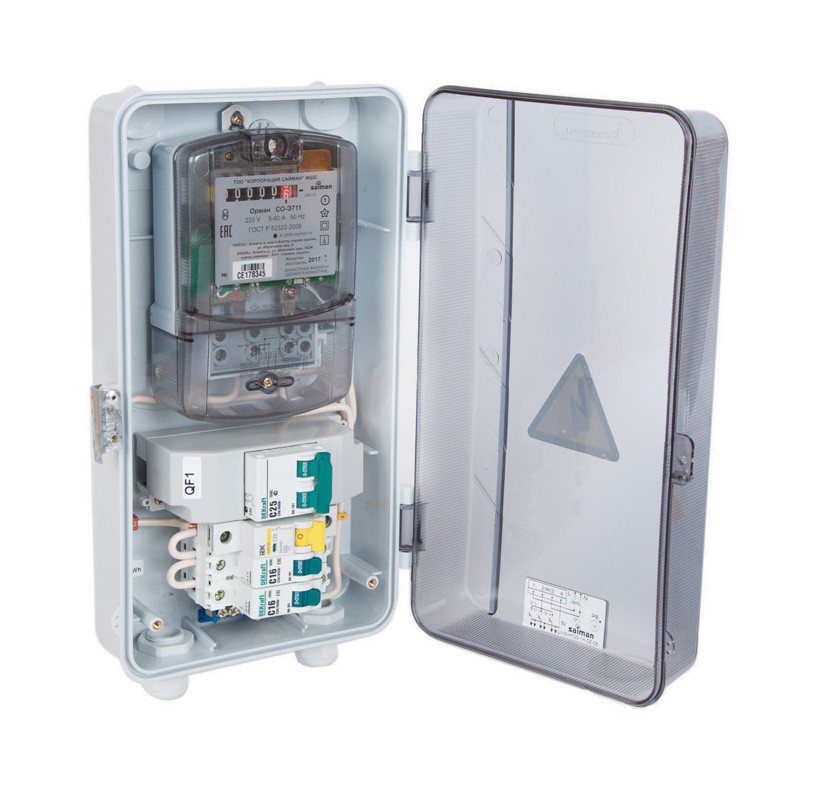 En plus du compteur lui-même, un disjoncteur, une mise à la terre et des pneus neutres peuvent être placés à l'intérieur de la boîte.