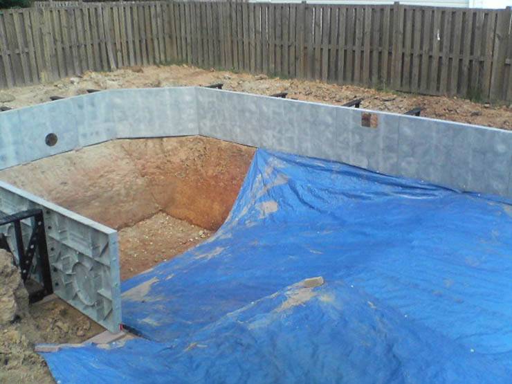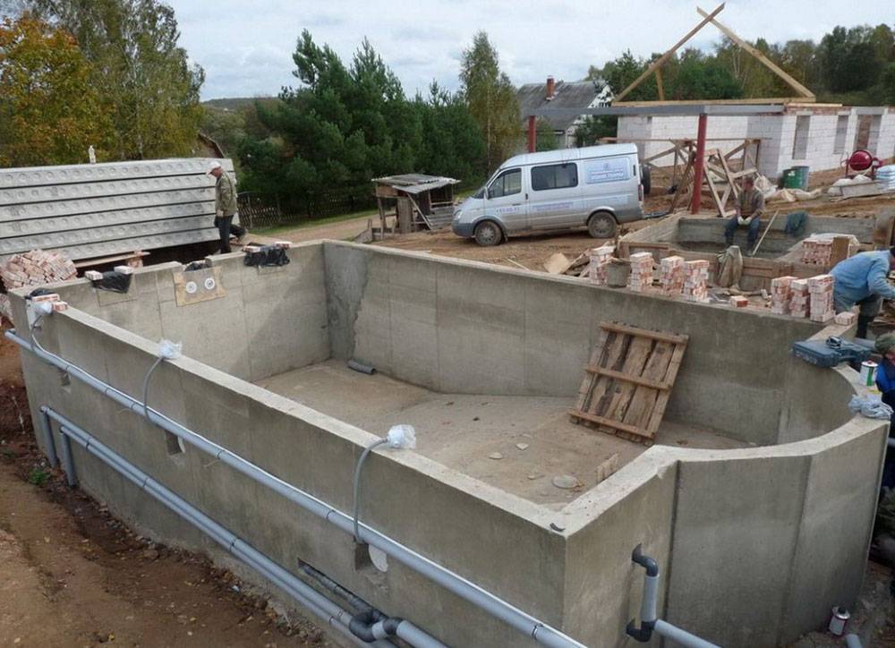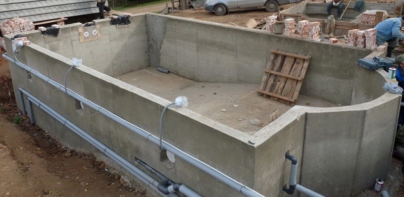 Tous les travaux d'installation des parois de la piscine sont souhaitables à effectuer en continu pour créer une structure monolithique. De plus, avant de couler, toutes les communications doivent être effectuées et les trous nécessaires à l'installation de l'éclairage doivent être prévus.