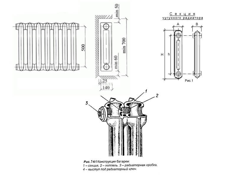 • L'installation des batteries en aluminium ou bimétal s'effectue selon les mêmes normes que pour la fonte. La raison de cette approche est la faible résistance aux charges mécaniques et la faible résistance des nœuds de connexion des sections. Par conséquent, au moins trois crochets sont également nécessaires ici.
