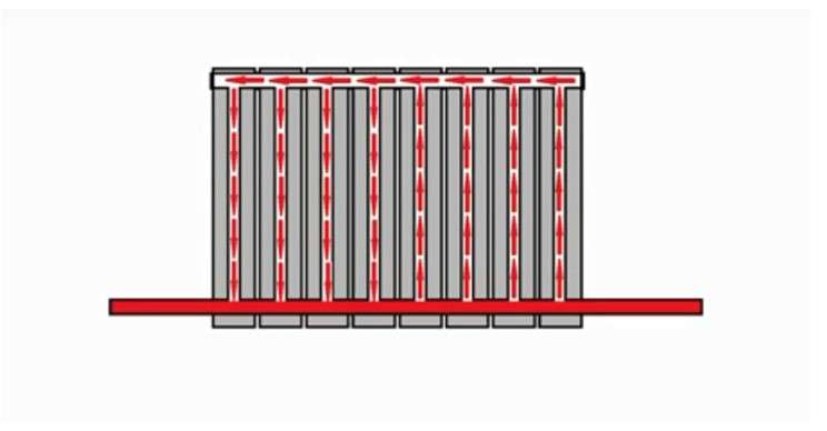La connexion diagonale est considérée comme la plus efficace pour les batteries bimétalliques, en particulier lorsqu'il s'agit d'un grand nombre de sections dans l'appareil. Bien que des batteries très larges équipées de dix sections ou plus ne soient pas souhaitables.