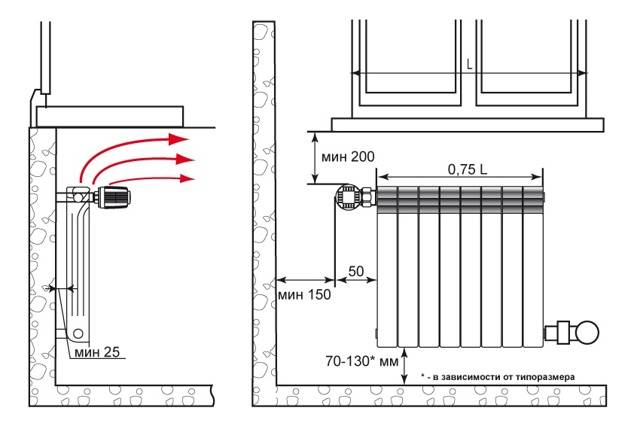 Il est très important non seulement de connecter les radiateurs de chauffage les uns aux autres, mais également de leur emplacement correct par rapport aux structures du bâtiment. Traditionnellement, les appareils de chauffage sont installés le long des murs des locaux et localement sous les fenêtres afin de réduire la pénétration des flux d'air froid à l'endroit le plus vulnérable.