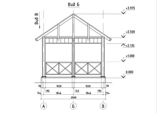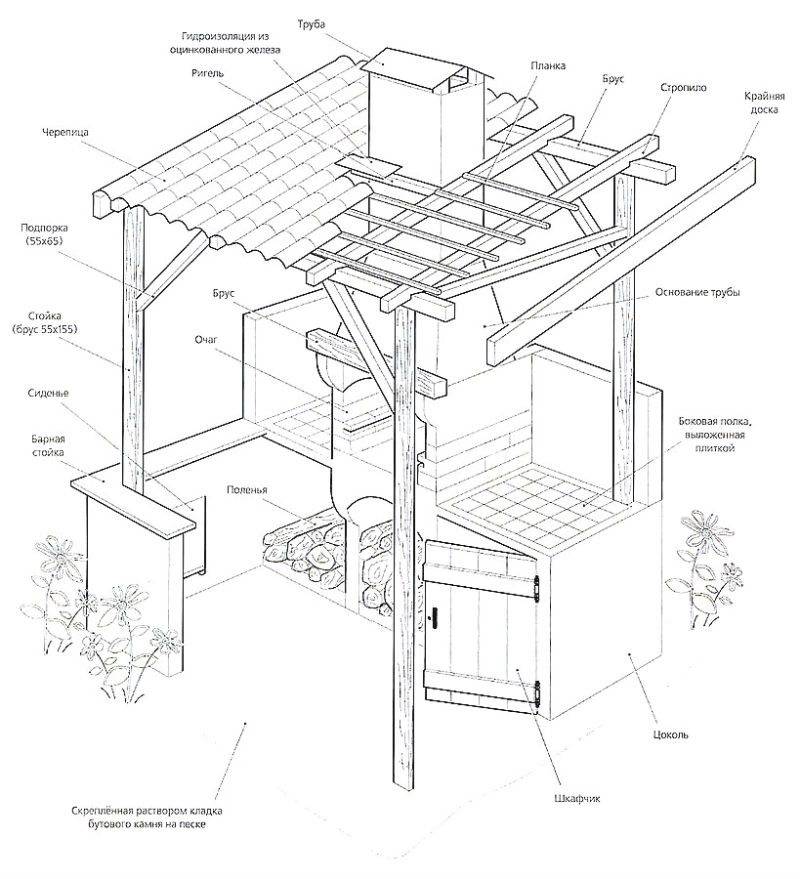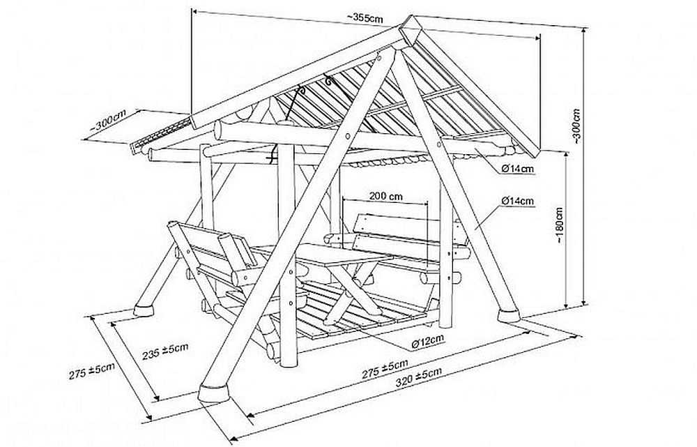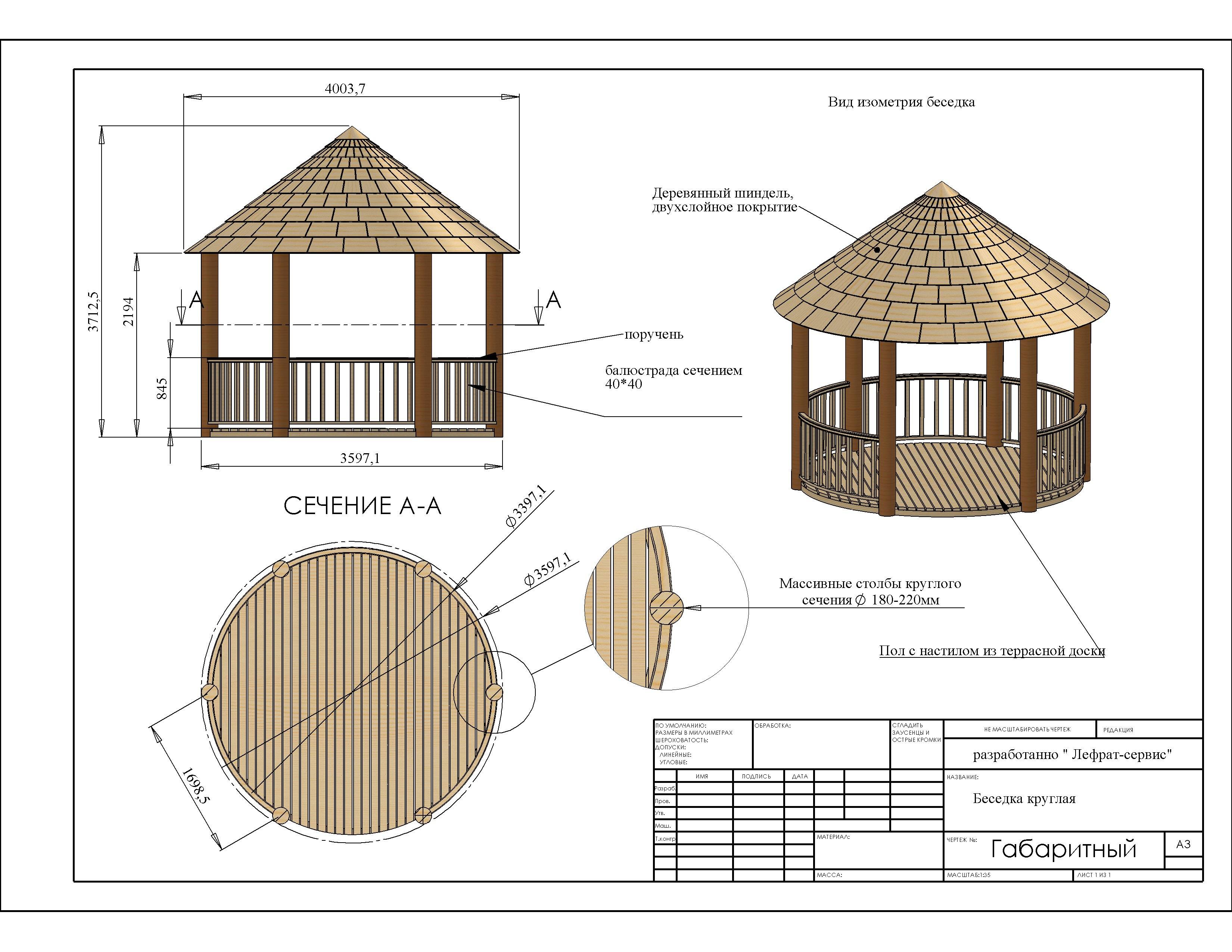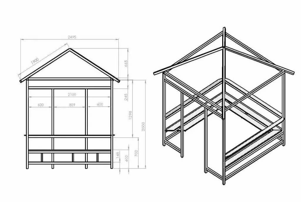 Le dessin peut être varié. Certains artisans créent des gazebos originaux équipés de zones de barbecue. Dans un premier temps, une simple esquisse est créée en 2 projections : de profil, frontale.