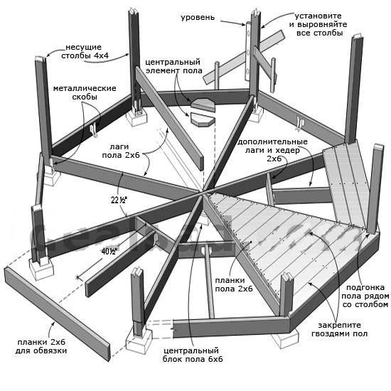 Par conséquent, nous examinerons étape par étape les étapes de la construction d'un gazebo hexagonal en bois.