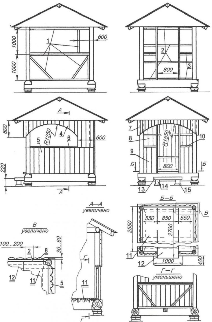Dans cette section, nous examinerons des exemples de différents types avec des dessins. Si vous n'avez pas le temps de dessiner vous-même ou si vous ne savez pas comment faire, les exemples donnés vous aideront à construire votre propre version du belvédère.