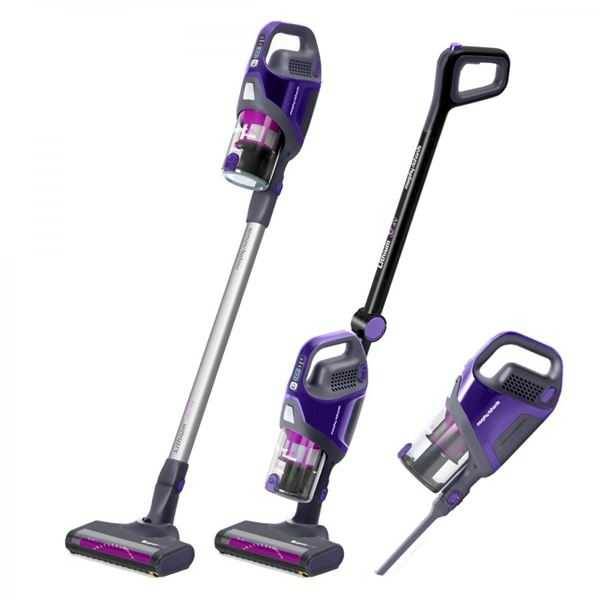 Aspirateur vertical alimenté par une batterie Li-ion. Le temps de travail est d'environ une heure. Le nettoyage à sec et humide est possible. La fixation des buses sur la vadrouille est réalisée à l'aide de supports magnétiques. La partie amovible peut servir de petit aspirateur pour les petites surfaces.