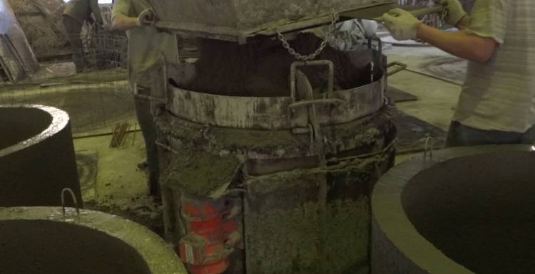 Pour la fabrication d'anneaux de puits, le béton de qualité M200 est utilisé.Ses composants sont le ciment, le sable, la pierre concassée et l'eau. Pour améliorer les caractéristiques de résistance, un renfort en acier est installé dans le moule