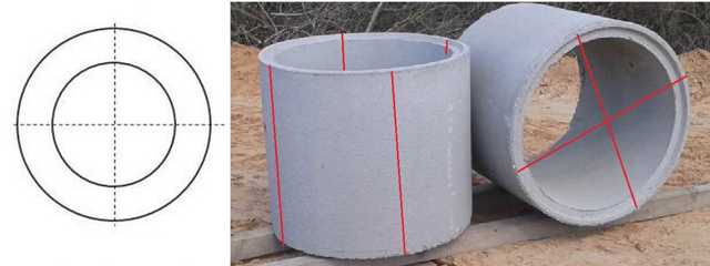 Selon la norme, les parois des anneaux peuvent avoir une pente technologique ne dépassant pas 1,5%. Mais en même temps, l'épaisseur de paroi et le diamètre intérieur au milieu de la hauteur doivent correspondre à ceux normatifs. En général, même sur les murs, l'absence de cavités et de fissures est un signe de qualité normale.