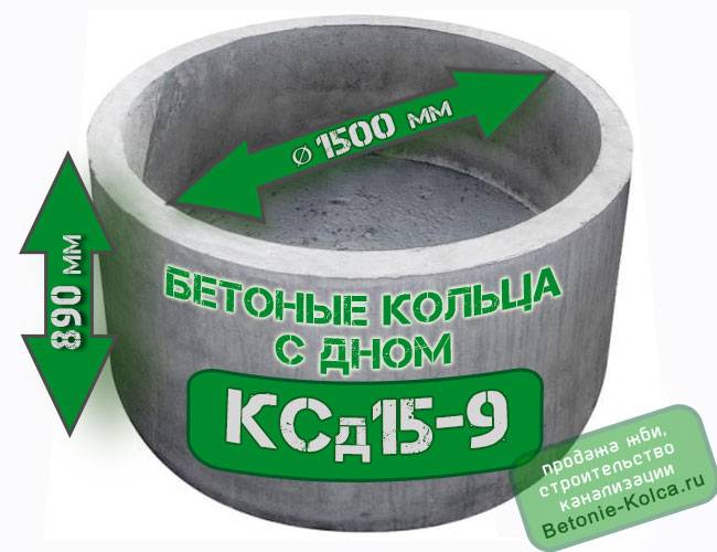 - KCD - anneaux en béton avec un fond. Ils sont comme un verre avec un fond coulé. Ils sont installés lors de l'assemblage des puits d'égout et des réservoirs de sédimentation, des fosses septiques. Garantit l'étanchéité et accélère l'installation - pas besoin de couler la plaque de fond.