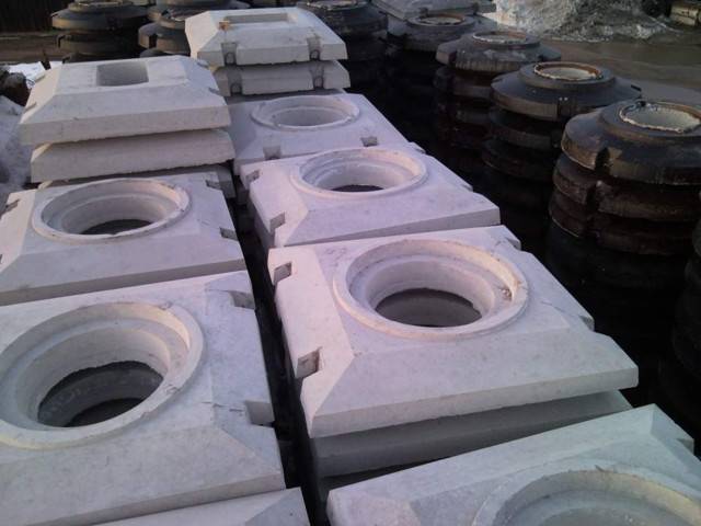 - PP - dalle de sol. Il s'agit d'une crêpe ronde avec un trou rond pour le couvercle du trou d'homme. Le trou est décalé par rapport à l'un des bords pour un accès plus facile.