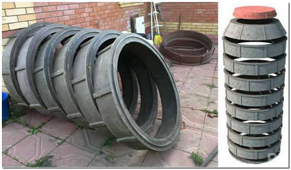 En utilisant la même technologie, des anneaux pour un puisard sont fabriqués. Des informations détaillées sur la classification et les méthodes de fabrication des anneaux en béton pour les égouts peuvent être trouvées dans cet article.