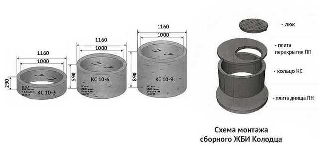 Puits d'eau. L'installation de puits pour la prise d'eau potable à partir d'anneaux en béton armé est l'un des moyens les plus populaires d'approvisionnement en eau des bâtiments résidentiels individuels dans les zones urbaines et rurales. Le puits est creusé manuellement ou mécanisé, après quoi des anneaux de mur d'égout avec une serrure y sont immergés. Si un puits est constitué d'anneaux en béton sur le site, la profondeur de la structure peut atteindre 30 m - dans ce cas, une pompe électrique submersible est utilisée pour puiser de l'eau.