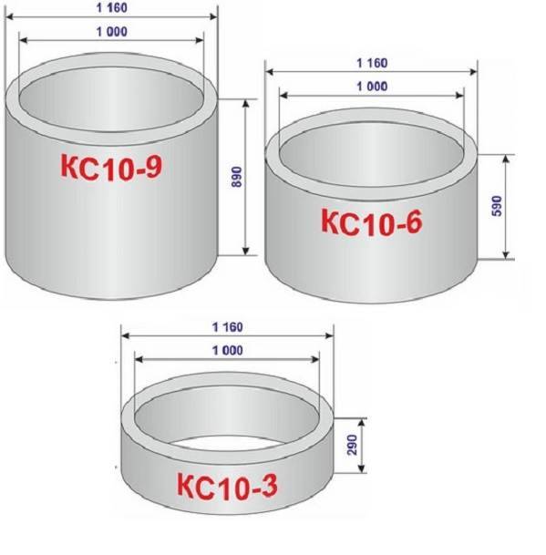 - KS - mur ou anneau traversant. C'est un cylindre en béton.Installés les uns sur les autres, ils forment une colonne de puits. Il existe différents diamètres - de 70 cm à 200 cm, avec une épaisseur de paroi de 5 à 10 cm.