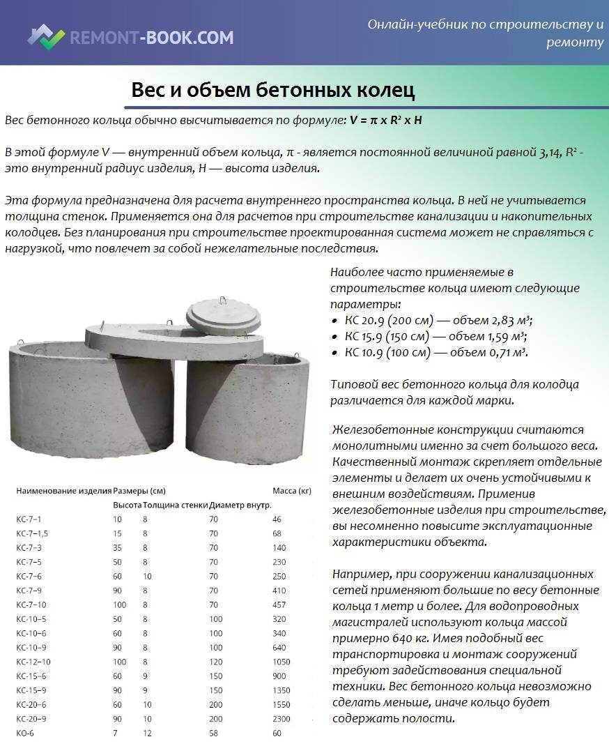 Puits de caisson. Un puits constitué d'anneaux en béton armé est souvent utilisé pour y placer des équipements de pompage, afin de protéger une source d'eau de puits du gel et des précipitations lorsqu'elle est prélevée par une pompe électrique submersible ou une station de pompage de surface. La profondeur de ces structures ne dépasse généralement pas 2 m, lors de l'installation, elles utilisent souvent des anneaux avec un fond fini ou un étage supérieur avec un trou pour une trappe, une autre option d'installation consiste à installer des plaques rondes séparées pour le trou d'homme inférieur et supérieur. Également pour les puits à caissons, les utilisateurs expérimentés achètent des structures prêtes à l'emploi avec des supports de roulement en métal intégrés situés sur toute la hauteur du mur.