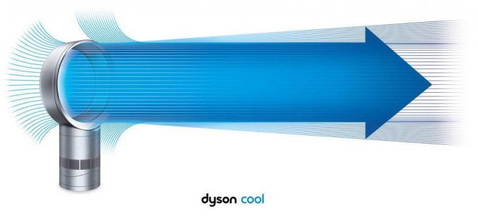 Deuxièmement, il peut être utilisé "dans le sens opposé" - comme appareil de chauffage. Pour ce faire, un élément chauffant est ajouté au ventilateur et l'air aspiré devient chaud. Il s'agit donc d'un appareil deux en un - par exemple, ce modèle Dyson Pure Hot+Cool