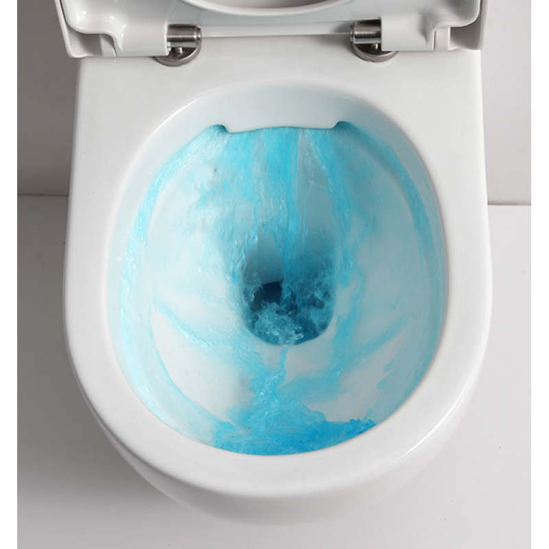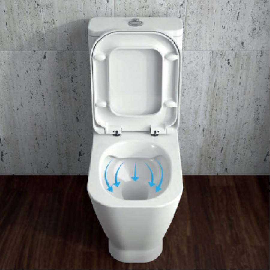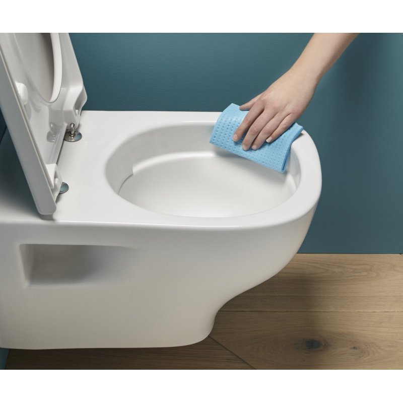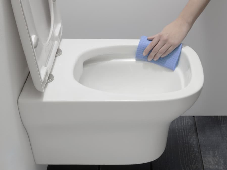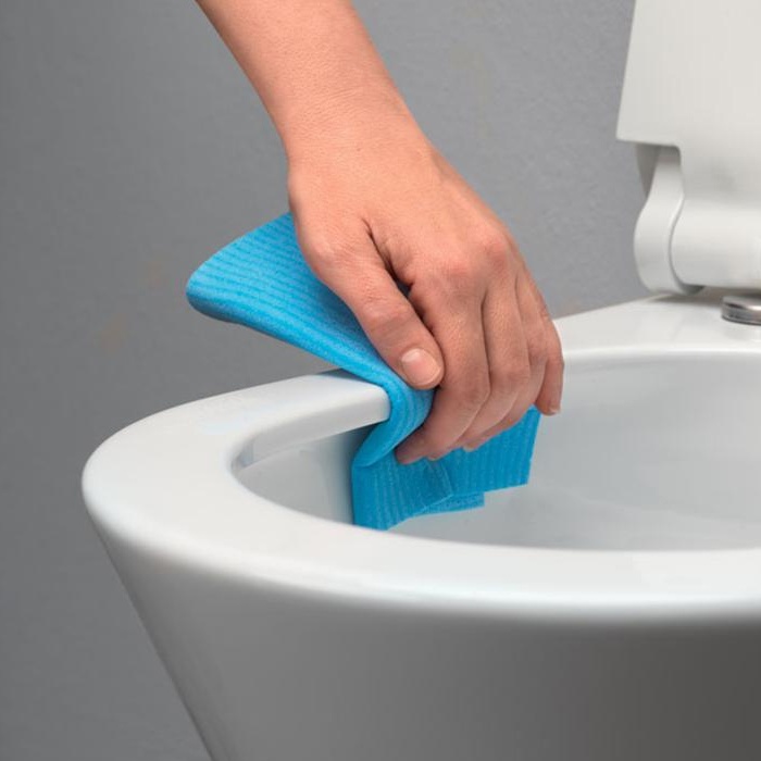 - Facile d'entretien - avec le système sans rebord, il n'y a pas besoin d'une énorme quantité de produits de nettoyage et de l'utilisation d'une brosse.Il suffit d'essuyer le bol avec un chiffon propre ou un chiffon humide.