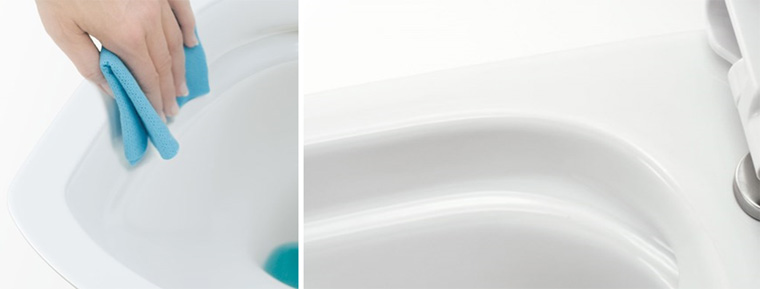Les entreprises européennes d'appareils sanitaires ont tenté de résoudre ce problème en recouvrant les zones difficiles d'accès avec des revêtements spéciaux qui repoussent la saleté et les bactéries.