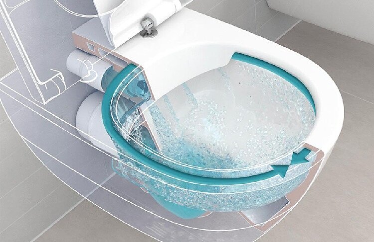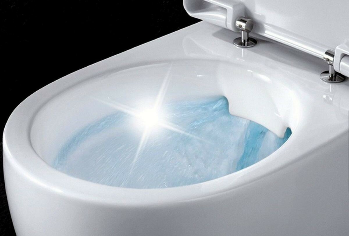 Contrairement aux modifications classiques de la plomberie, une cuvette de toilette sans rebord, dont les avantages et les inconvénients sont dus aux caractéristiques de conception, est facile à désinfecter et très hygiénique. Lors de la première étape de la création d'un bol sans rebord, l'un des principaux problèmes de la conception innovante était les éclaboussures d'eau lors du rinçage. Pour éliminer cet inconvénient important, un séparateur en céramique spécial a été développé.