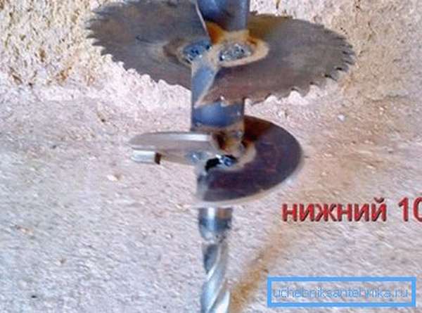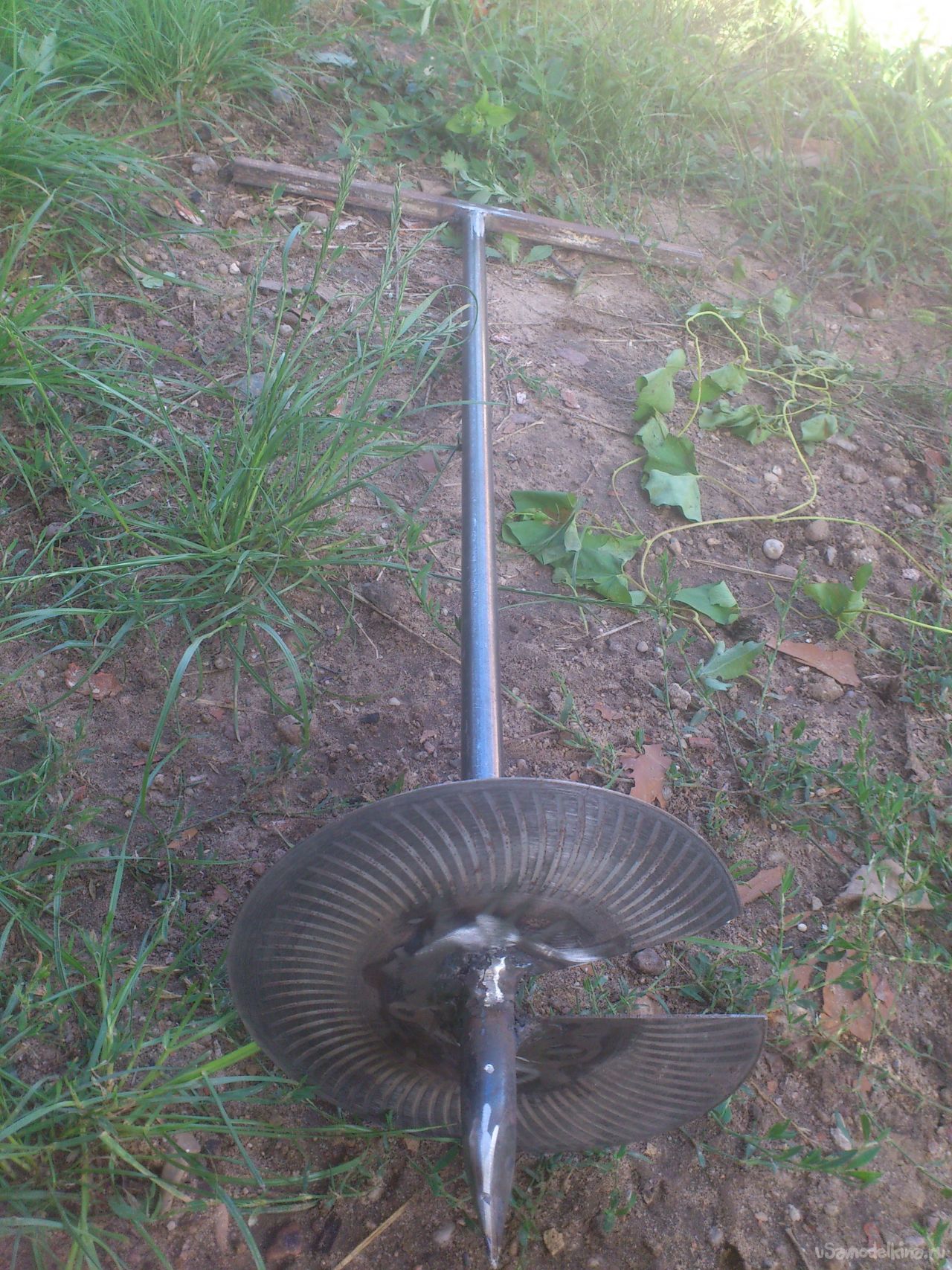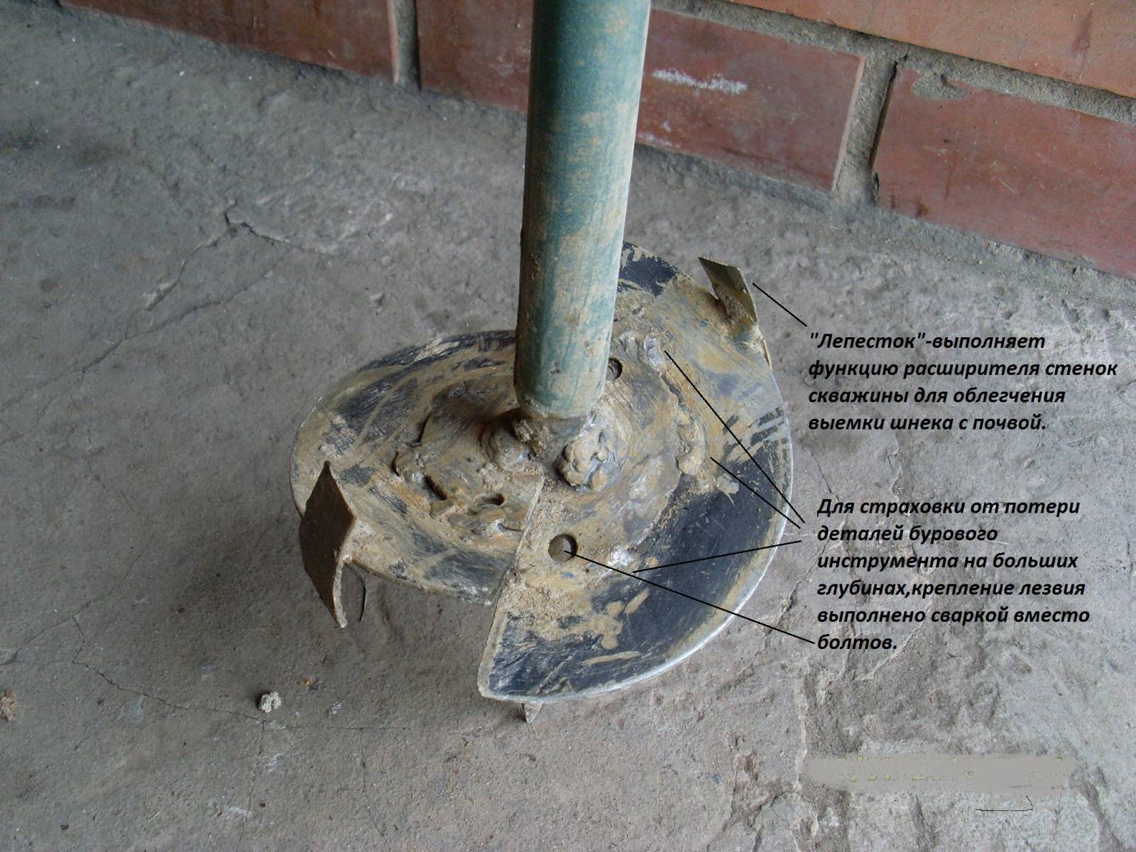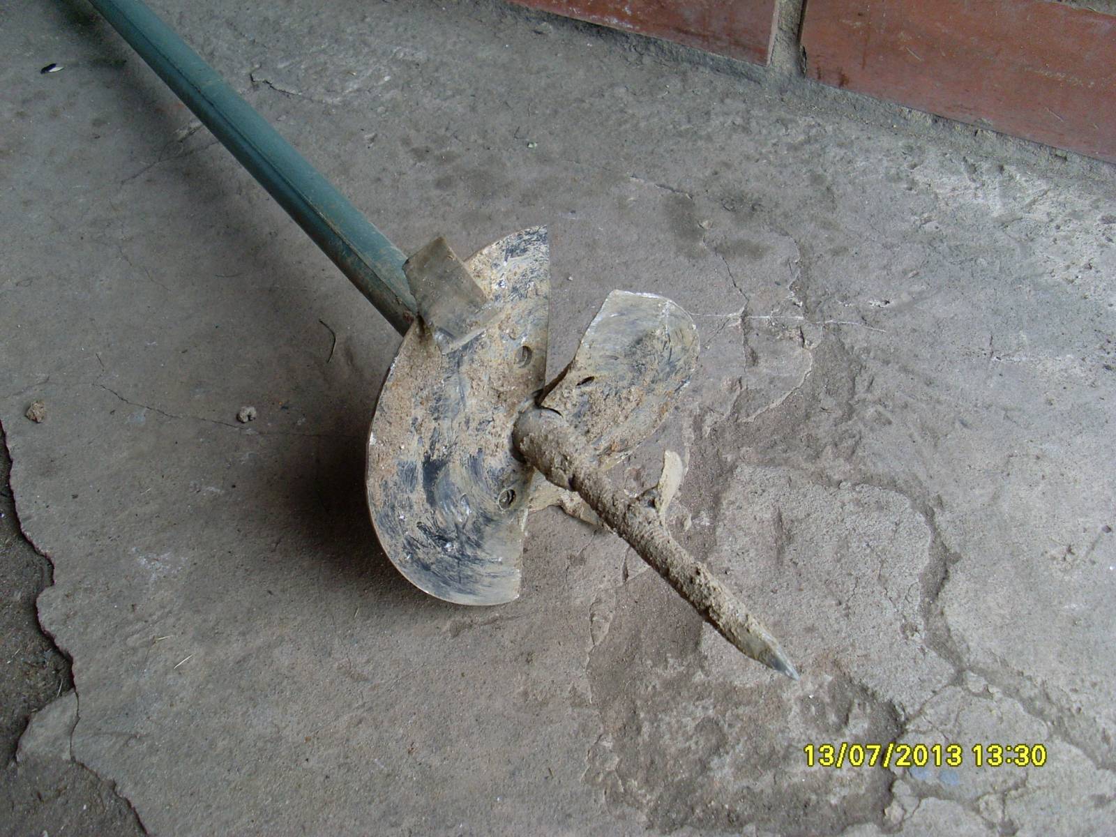 Le couteau à piolet servira de tarière et des tuyaux en acier d'un diamètre allant jusqu'à 25 mm peuvent être utilisés comme rallonges. Pour accélérer le processus, des couteaux renforcés sont soudés aux bords d'enroulement de la tarière improvisée