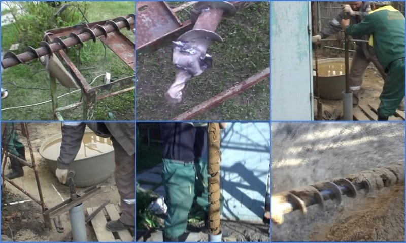 Le choix de la méthode de forage dépend de la quantité d'humidité dans le sol, de sa fluidité et de sa dureté. Dans les couches denses, non sursaturées en eau de surface, il est plus facile d'effectuer l'abattage à l'aide d'une méthode à vis rotative. Comme pointe de foret, on utilise une perceuse en spirale ou une cuillère de forage - des tiges métalliques avec un élément de coupe en spirale ou en pétales étagés. La cuillère est en outre équipée d'un récipient pour retenir l'argile à l'intérieur de l'outil et l'empêcher de tomber dans le canon.