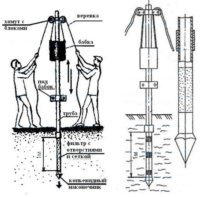 Une aiguille de puits peut être construite de différentes manières : elle peut être martelée ou forée. Pour enfoncer la structure dans le sol, vous aurez besoin d'une poupée d'entraînement et vous devrez verser de l'eau directement dans le tuyau tout le temps. Ensuite, lorsque l'eau pénètre brusquement dans le sol, la structure peut être enfouie dans le sol. Lorsqu'il descend encore de 50 cm, vous pouvez connecter la pompe.